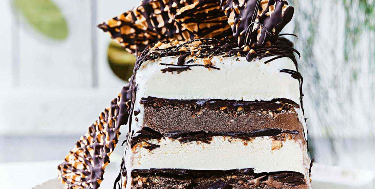 Layered Ice Cream Cake With Peppermint Caramel Woolworths Taste